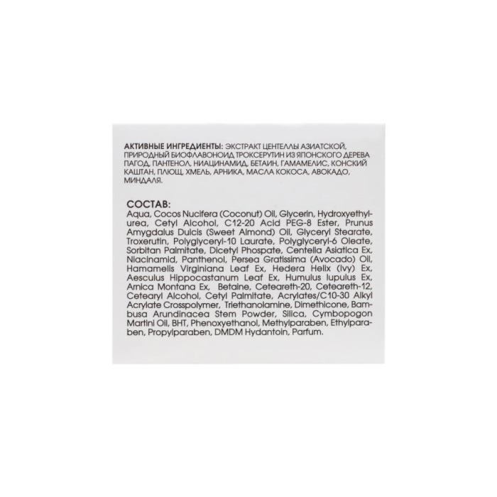 Крем обеспечивает эффективный комплексный уход за реактивной кожей, имеющей склонность к куперозу и покраснению. ЦЕНТЕΛΛА АЗИАТСКАЯ обладает выраженным успокаивающим, увлажняющим и восстанавливающим действием. Эффективно и комплексно решает проблемы чувствительной кожи. ПРИРОДНЫЙ БИОФΛАВОНОИД уменьшает интенсивность покраснений, сокращая видимые проявления «красной сеточки», снижает чувствительность кожи. ФИТОЭКСТРАКТЫ повышают барьерные свойства, успокаивая кожу, склонную к покраснениям. ПАНТЕНОЛ, БЕТАИН, НИАЦИНАМИД успокаивают, восполняют дефицит влаги, выравнивают цвет лица и стимулируют процессы восстановления кожи. МАСЛА КОКОСА, АВОКАДО, МИНДАЛЯ питают и смягчают кожу, возвращают ей комфорт и гладкость, обеспечивают антиоксидантную защиту.