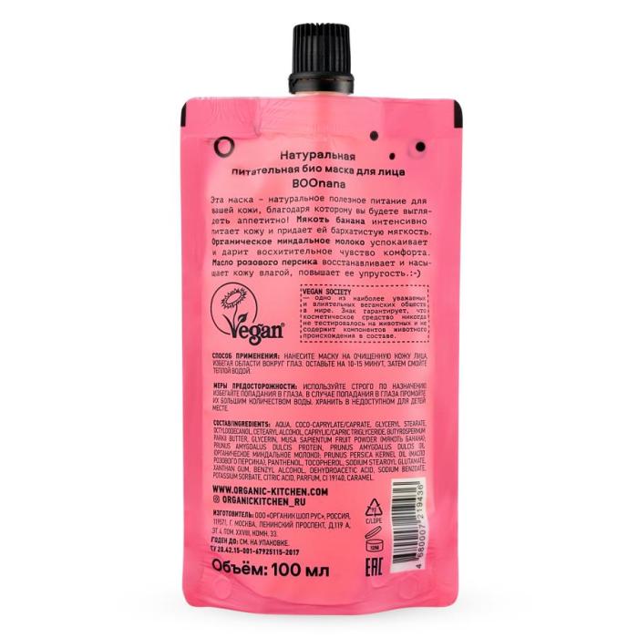 Kitchen Домашний SPA Маска для лица Био натуральная питатательная Boonana 100 мл