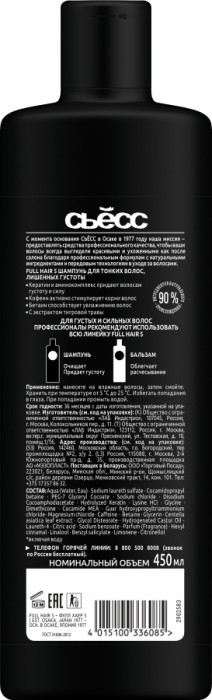 Профессиональный женский шампунь Сьесс Full Hair 5 — это интенсивный уход за тонкими волосами. Он придаёт объём и стимулирует корни, делая волосы более густыми и плотными.