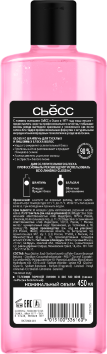 Профессиональный женский шампунь Сьесс Glossing — это бережный уход за волосами, который помогает разгладить их и придать сияние.