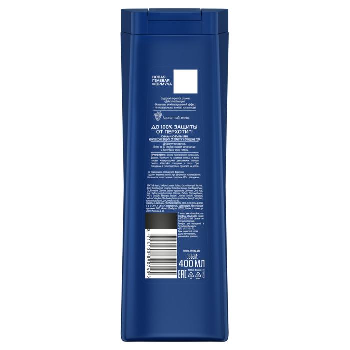 Шампунь-бальзам, гель для душа Объем и сила — это средство 3в1 — шампунь, бальзам и гель для душа, мгновенно смывающий грязь, жир и перхоть*. Формула шампуня-бальзама, геля для душа Объем и сила содержит: ● цинк пиритион; ● глицерин; ● масло семян подсолнечника. Активные компоненты эффективно очищают и увлажняют кожу головы. Благодаря этому мужской шампунь с хмелем устраняет видимую перхоть и препятствует ее повторному появлению*. Подходит для ежедневного применения.