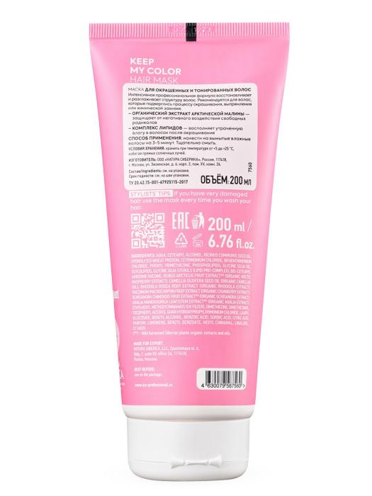 KEEP MY COLOR Маска для окрашенных и тонированных волос 200 мл