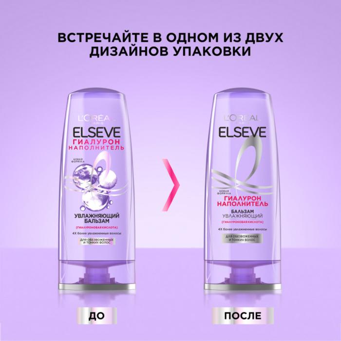 Увлажняющий бальзам "Гиалурон Наполнитель" с гиалуроновой кислотой заметно облегчает расчесывание, интенсивно увлажняет. В результате волосы выглядят в 4 раза более увлажненными* и упругими.