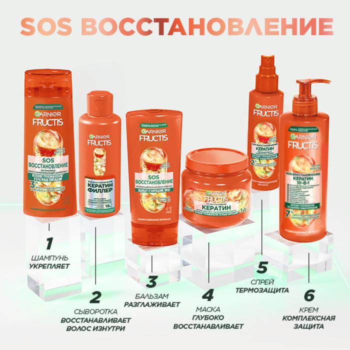 Шампунь "SOS Восстановление", созданный для возвращения силы и красоты поврежденным, тонким и безжизненным волосам. Обогащен растительным кератином и маслом марулы, делает волосы в 10 раз более крепкими и в 7 раз более гладкими