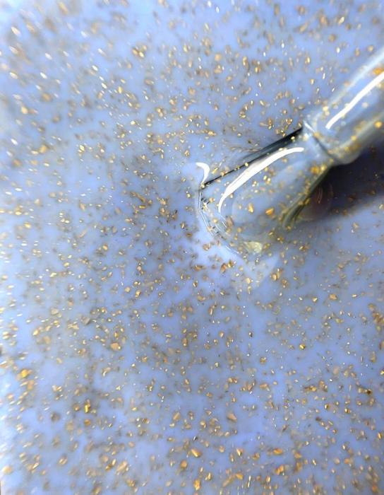 Гель-лак каучуковый с кальцием 10 мл № 127 Голубой с золотой поталью, плотный 10мл