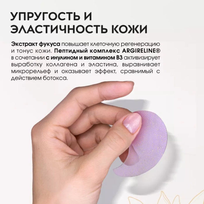 Экстракт фукуса повышает клеточную регенерацию и тонус кожи. Многофункциональный пептидный комплекс последнего поколения ARGIRELINE® в сочетании с инулином и витамином В3 активизирует вырабо