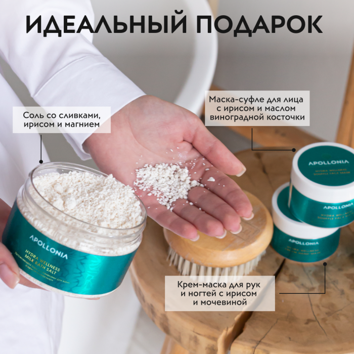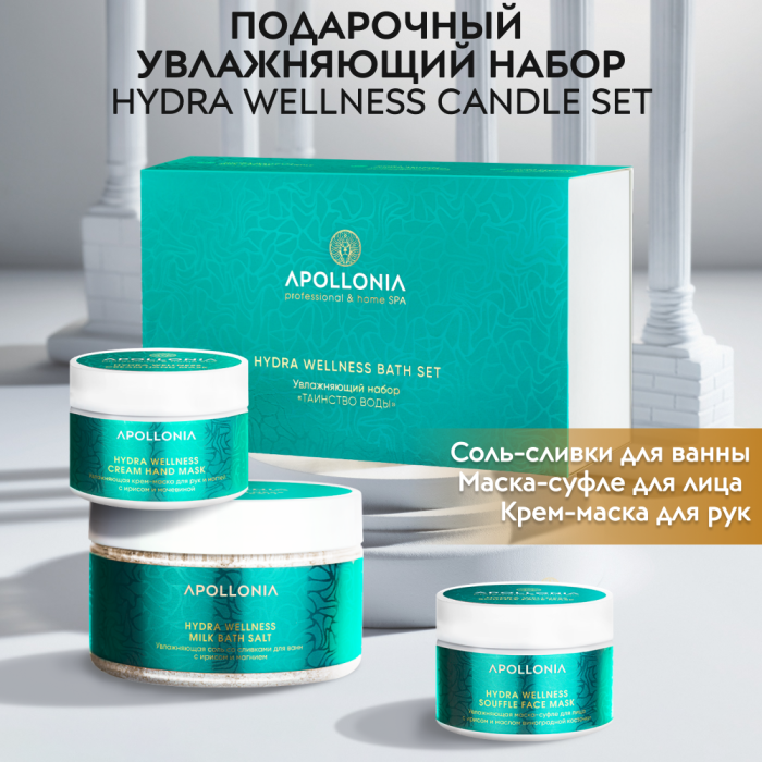 HYDRA WELLNESS BATH SET Набор увлажняющий Таинство воды (соль для ванны 300 гр+ маска-суфле для лица 150 мл + крем-маска для рук и ногтей 75 мл)