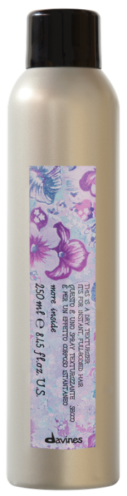 Не утяжеляет и не склеивает волосы, создавая легкий эффект небрежности. Позволяет быстро изменить форму прически без мытья головы.Идеально подходит для тонких, лишенных объема волос. Идеален для длинных и средней длины волоса. Применяется как для прикорневого объема, так и для нанесения по всей длине волос.Уровень фиксации: средняя фиксация.