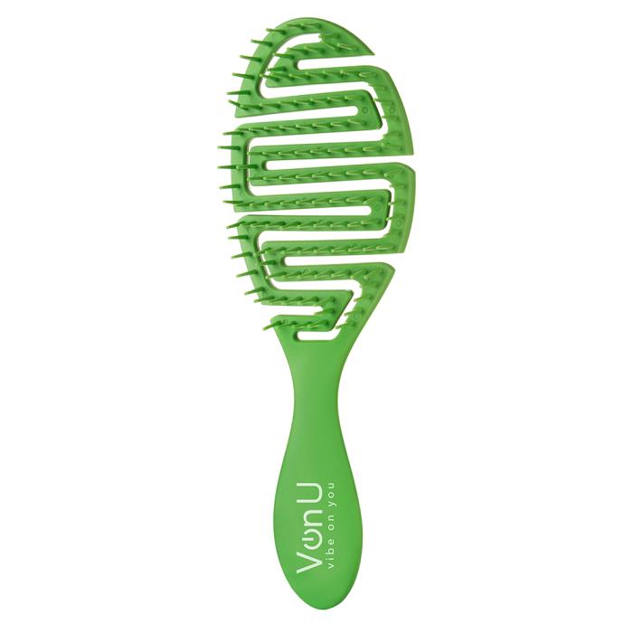 Расческа распутывает волосы в считанные секунды, а дышащий корпус удобен при укладке феном. Сочетание уникального материала и дизайна позволяет зубцам гнуться и не ломаться - гибкая форма идеально повторяет контур головы, массирует и легко распутывает волосы. Антистатический материал массажной расчески не имеет зазоров, легко очищается.