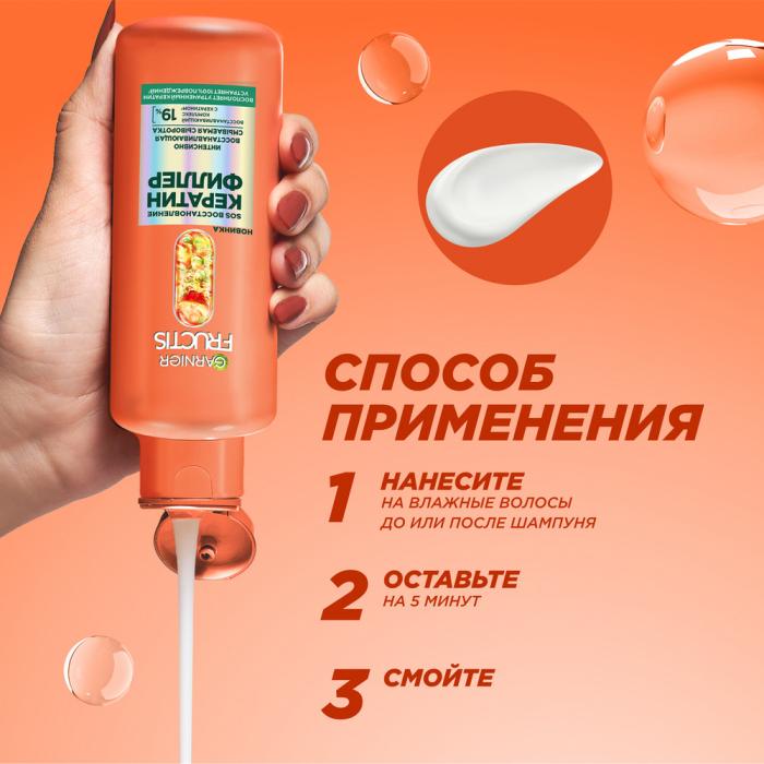 Нанесите на влажные волосы до или после использования шампуня Fructis SOS Восстановление, оставьте на 3–5 минут и тщательно смойте.