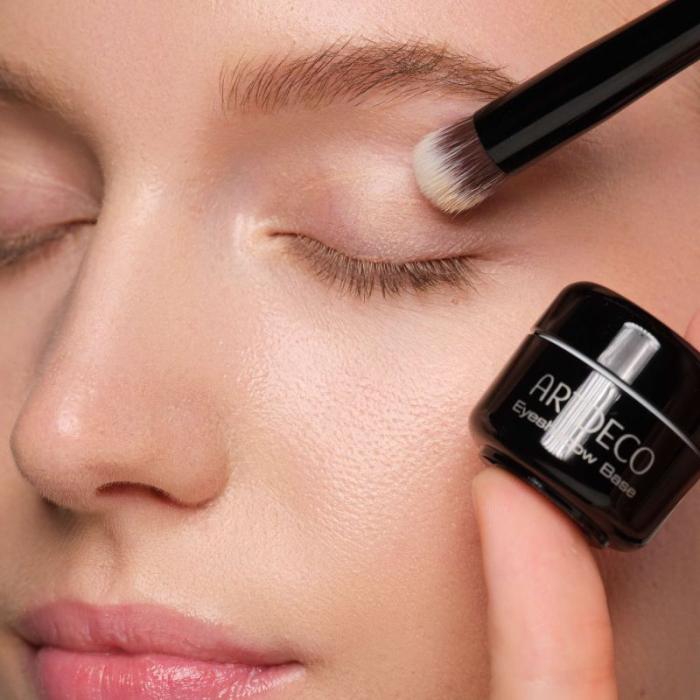 Нанесите небольшое количество базы на веко при помощи пальца или кисти. После высыхания нанесите тени.